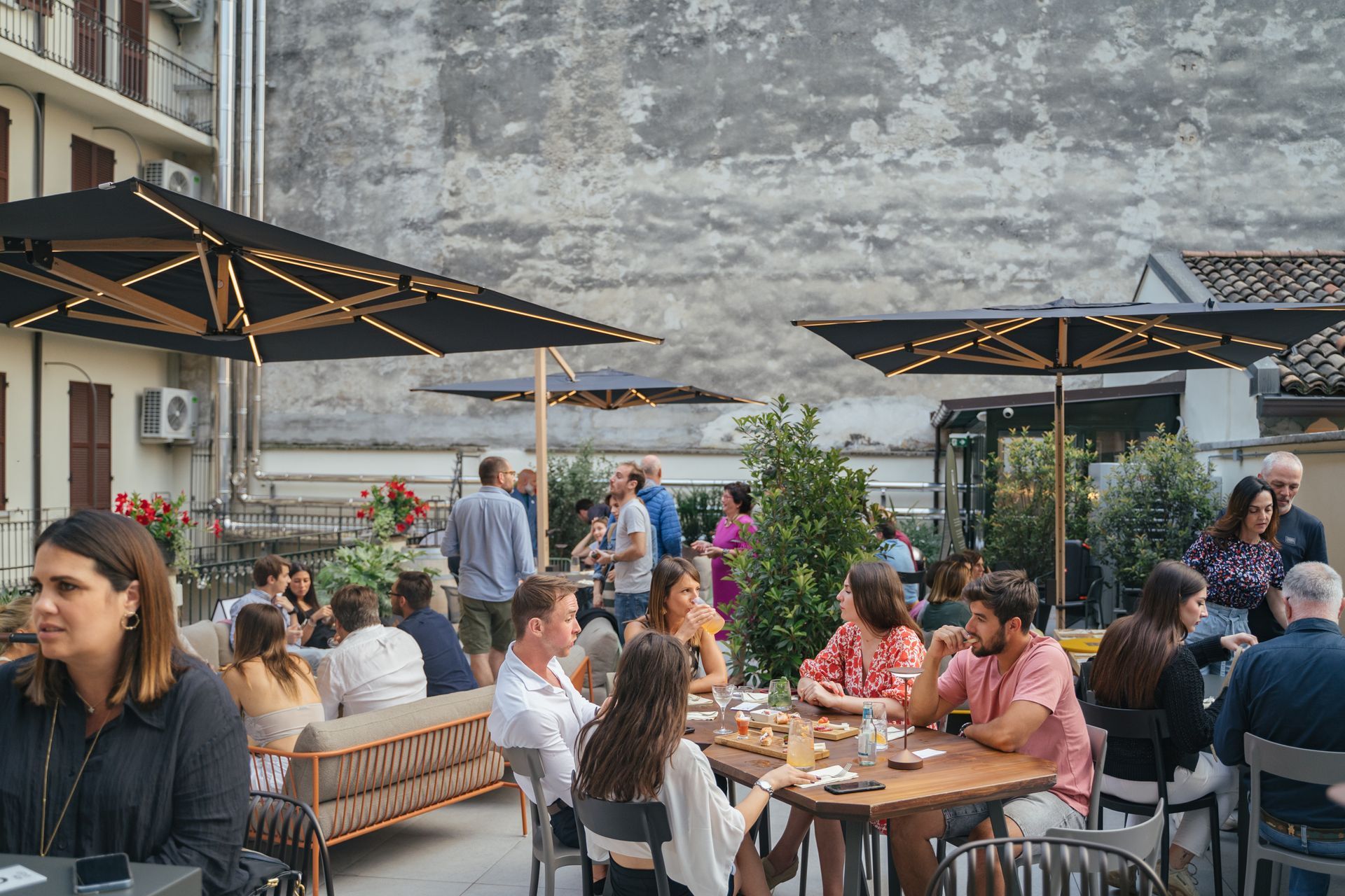 There's a place in the city center where the atmosphere becomes light, time slows, and an aperitivo turns into an experience. It's the terrace of Üsteria, a little gem perched above the internal courtyard, far from the chaos yet very close to the beating heart of Lecco.