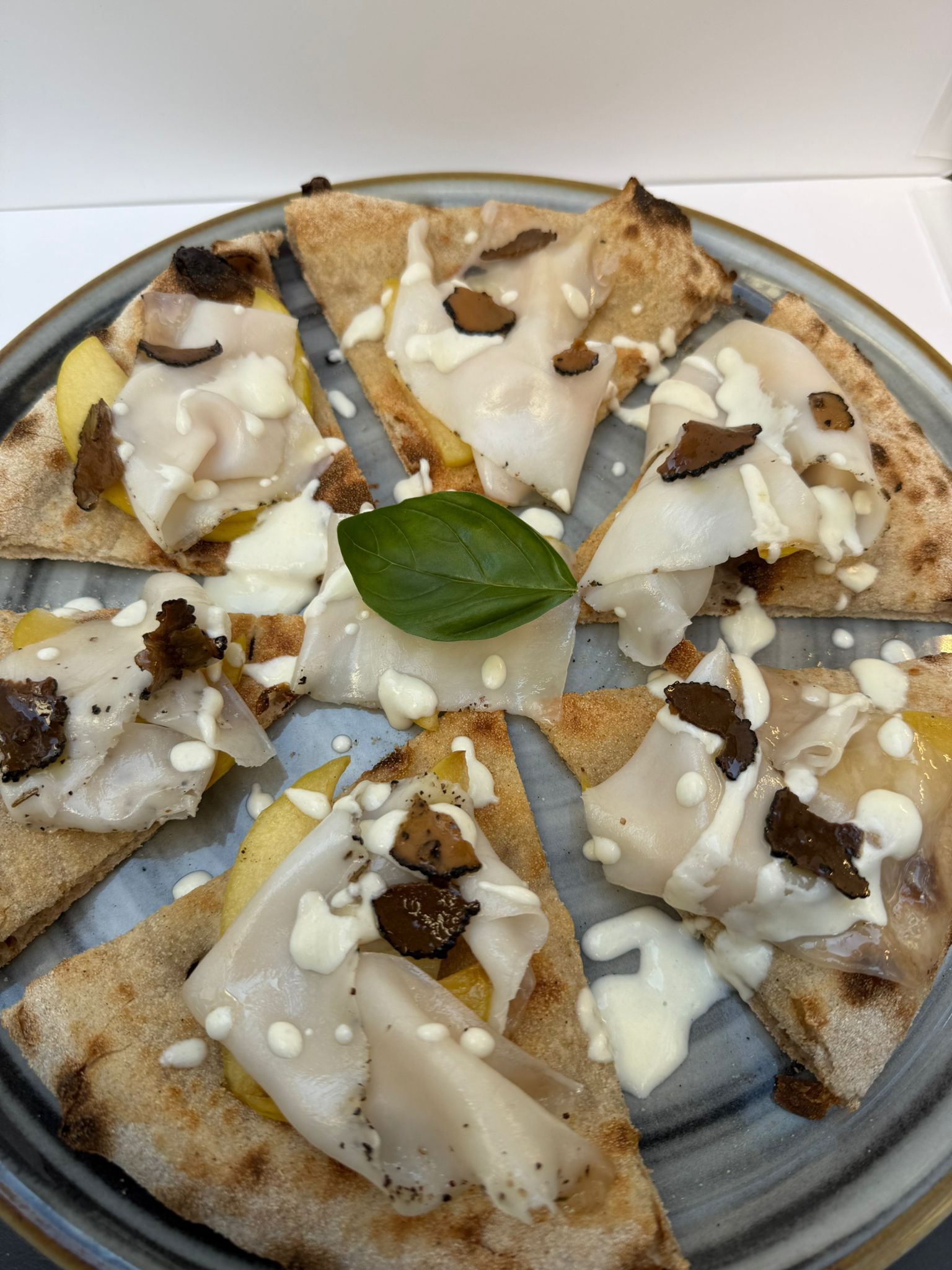alta digeribilità. Un lavoro fatto con pazienza, tecnica e tanta passione. Il risultato? Una pizza dal morso fragrante, sottile ma strutturata, perfetta per essere gustata anche in condivisione.
